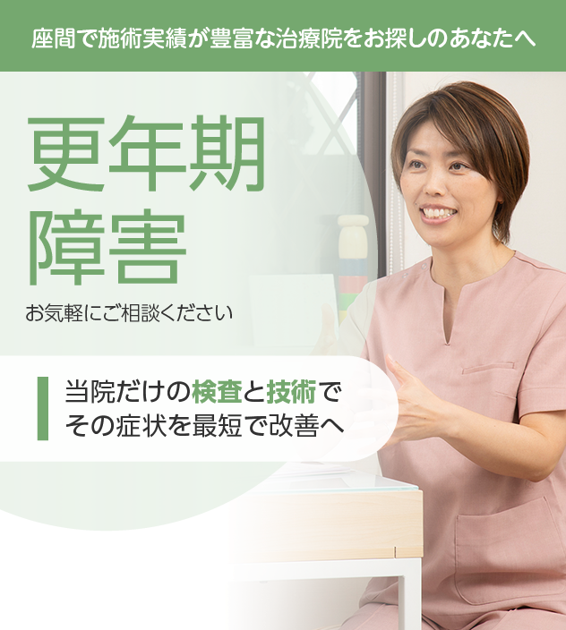 更年期障害でお困りの方はどうぞお気軽にご相談ください。院長が最後まで寄り添います。